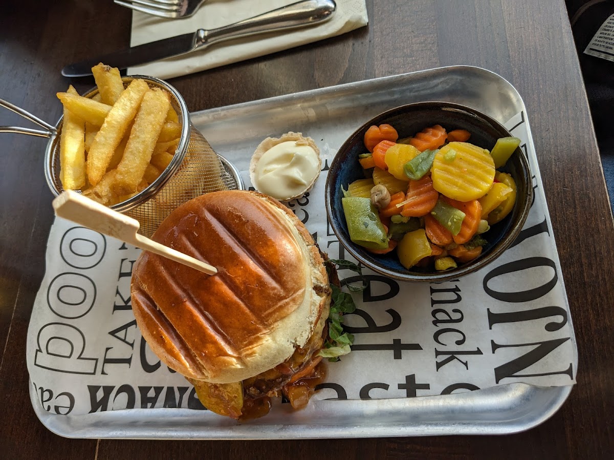 Wat huiverig geworden na de vele recensies die niet goed waren. Van bestellen via app tot slechte bediening. We hadden gereserveerd voor s'avonds en konden plaats nemen waar we graag wouden. Toen we bijna drankjes via de app wouden bestellen( omdat ik hiervan iets geleze had), kwam een vriendelijke dame en vroeg of we iets wouden bestellen. Ook werd er meteen gevraagd of we wat wouden eten en werden er menukaarten gebracht. Service snel Eten was goed Ja groente uit diepvries maar dit is vrij normaal in Duitsland